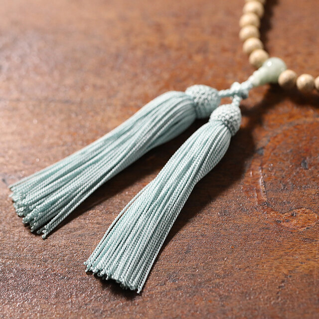 房は、本絹で親玉に合わせ翡翠色を組み合わせることで、上品で高級感ある仕上がりになりました。正絹製ですので、永くお使い頂けます。