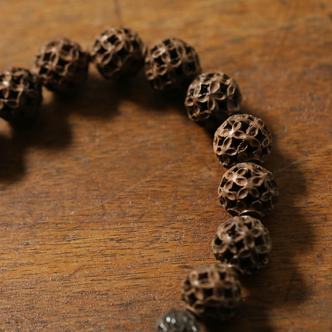 素材は、天然木のツゲから作られており、職人がひと玉ひと玉、丁寧に宝相華を彫り上げた逸品になります。細部まで丁寧に彫られ、均一に美しく仕上がっています。