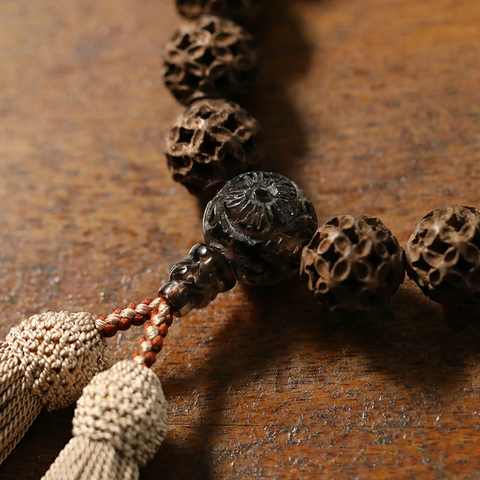 【受注生産】男性用数珠 柘七宝彫(つげしっぽうぼり)宝相華彫刻仕立て
