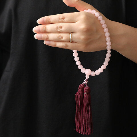上質な天然の紅水晶(ローズクォーツ)を使った、一生もののお数珠です。