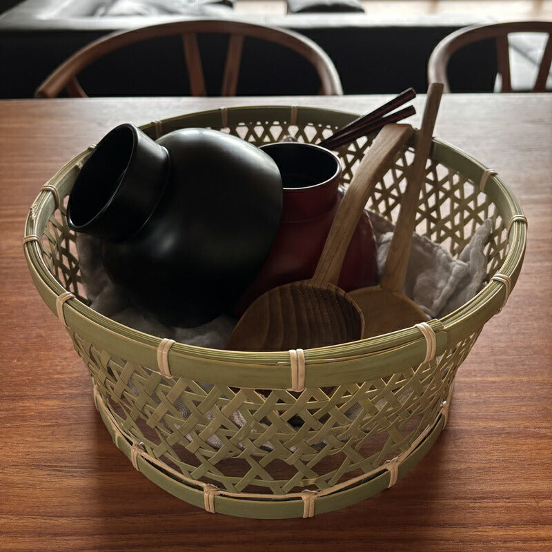 野菜や果物などの食品の保存に使っても。見た目の美しさと機能性を兼ね備えた、伝統的な竹細工です。