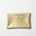 | 上品なツヤ、やわらかく、軽くて丈夫なゴートスキンを使用したポーチ。 フラップはスナップボタン、内側は三つに別れ、中央にはファスナー付きの収納があります。 携帯や小さめのお財布が入るくらいのちょっとしたお出かけに丁度良いサイズ。 とても軽く、やわらかで馴染みのいいゴートスキン。ベーシックなブラック、スタイリングのポイントにもなるシルバーとゴールド、箔プリントのドットシルバー、全5色。 | |