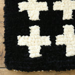 経糸に木綿糸を張り、ウールの糸を一つひとつ手で括りつけては切っていく。