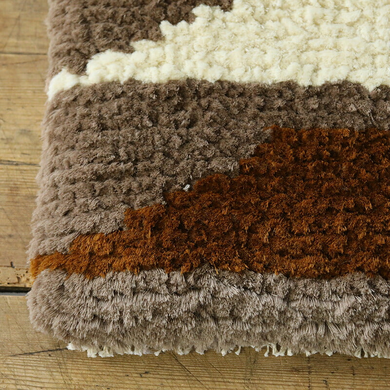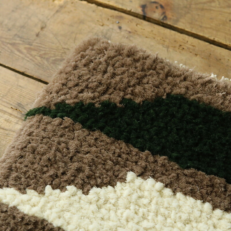 威張らない美しさを備えた物を作ります。 倉敷ノッティングはその一つです。  経糸にウールの糸を一つづつ結び付けて織ります。 暖かく、丈夫で、長くお役にたちます。