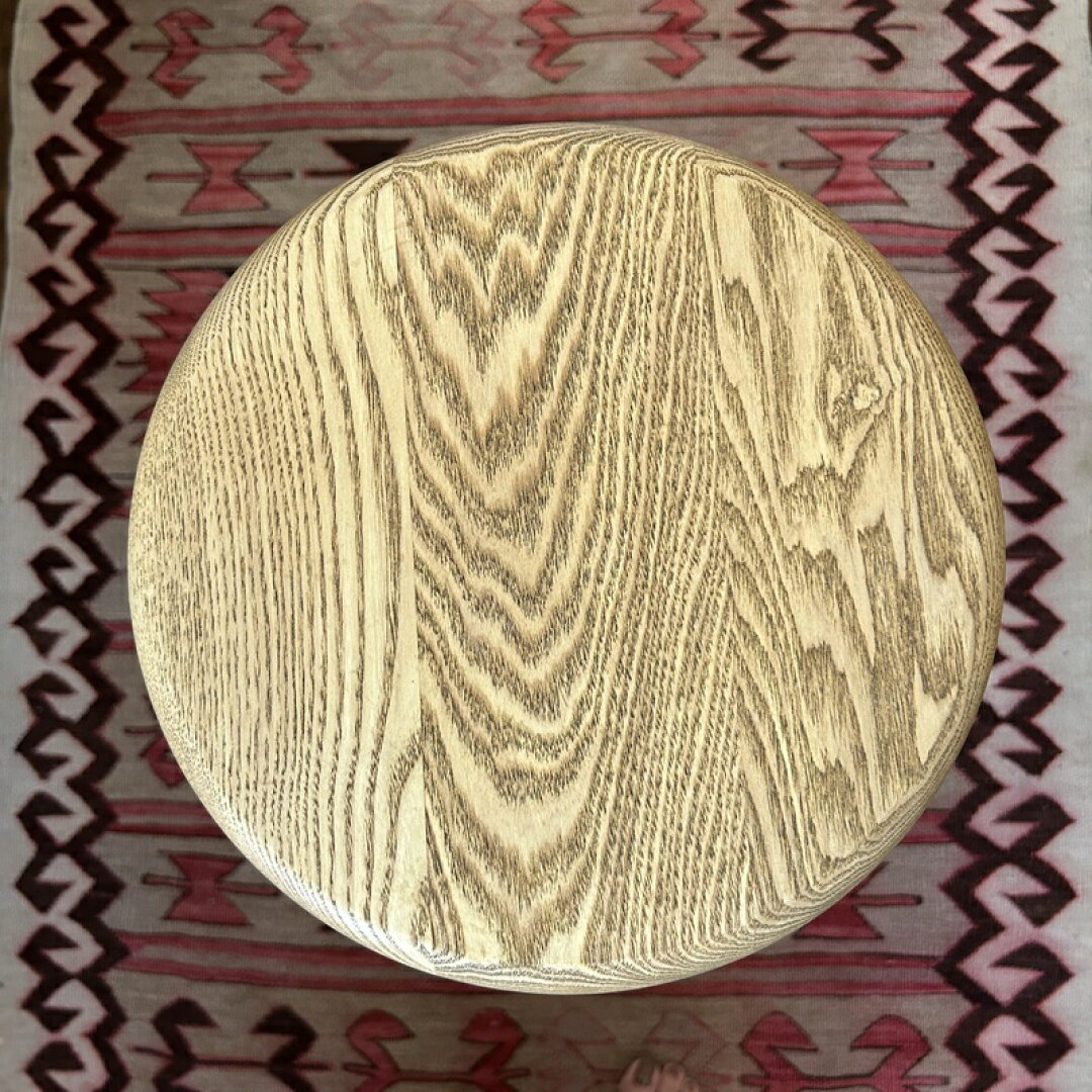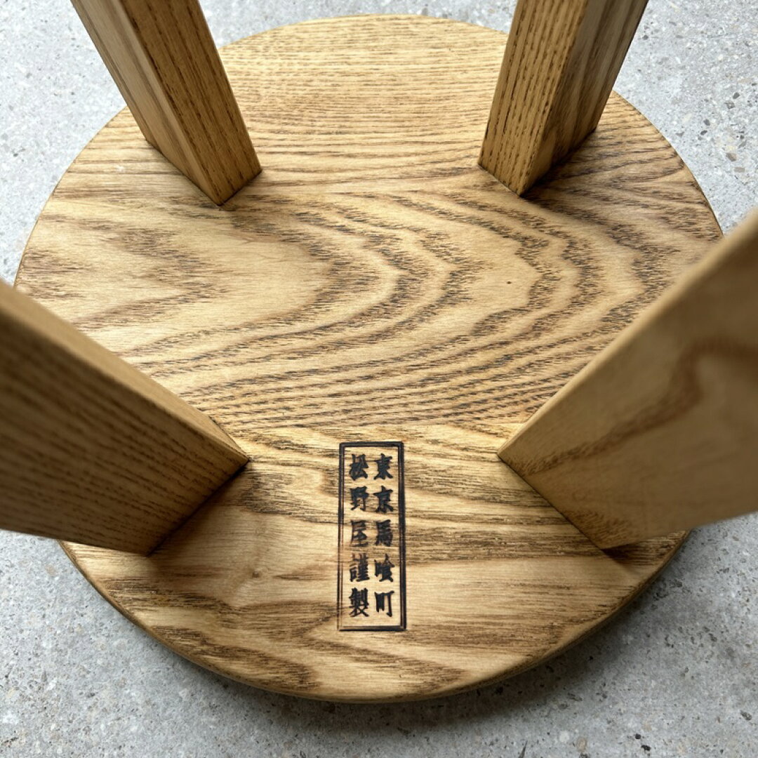丈夫で粘りのあるタモ材をつかった丸椅子です。