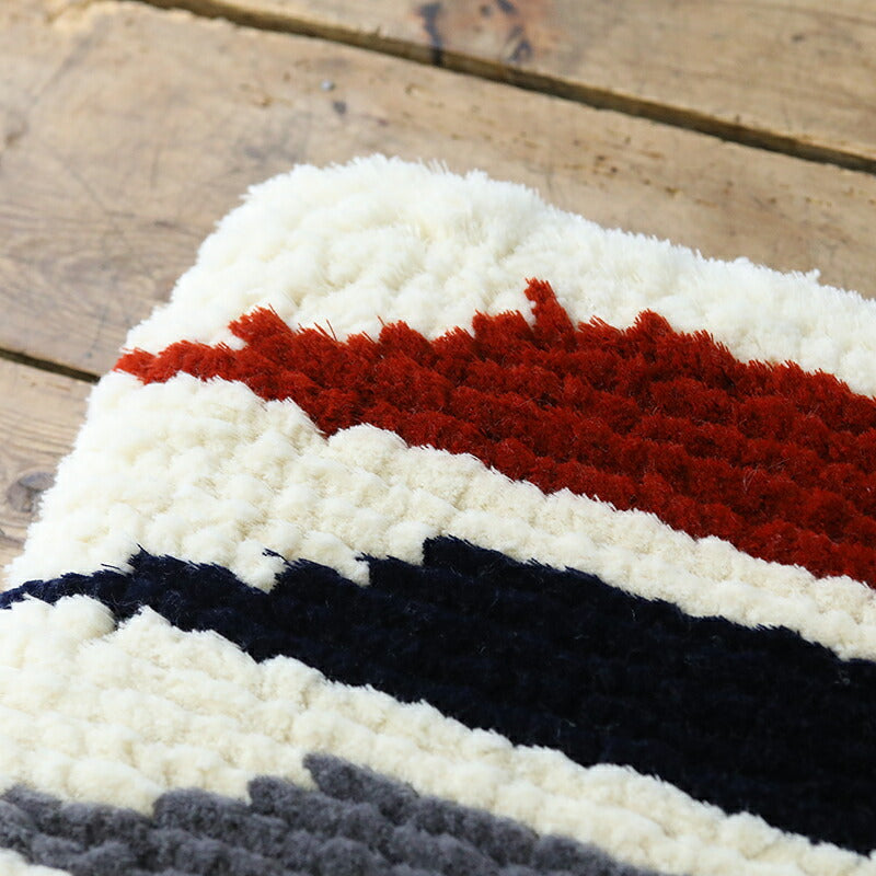 威張らない美しさを備えた物を作ります。 倉敷ノッティングはその一つです。 経糸にウールの糸を一つづつ結び付けて織ります。 暖かく、丈夫で、長くお役にたちます。