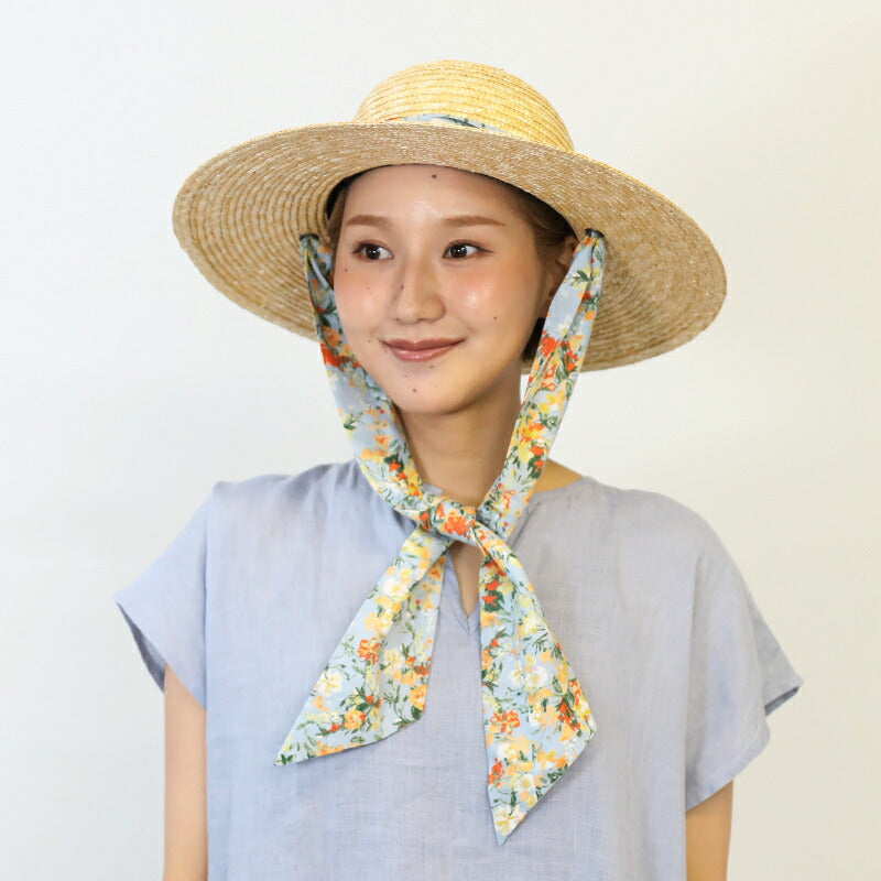 小花柄のリボンを大きく帽子に巻き、エレガントに仕上げた麦わら帽子。 ガーデニングや家庭菜園をファッションから楽しみたいという人に最適で、普段使いもOK!