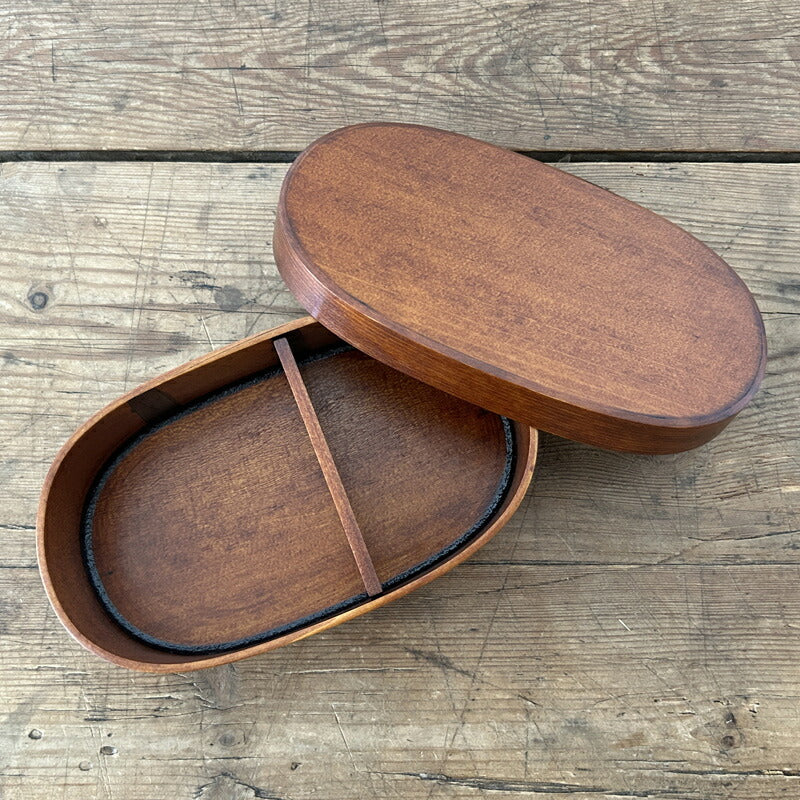松野屋 すり漆丸小判弁当箱 小 (長野産)
