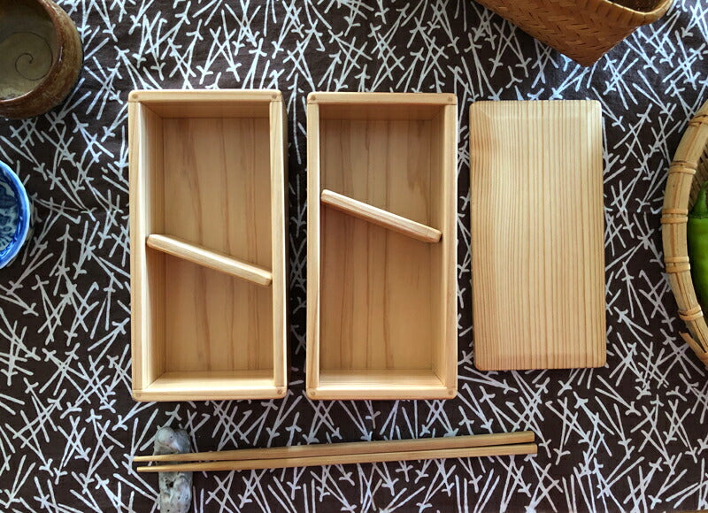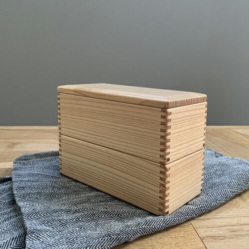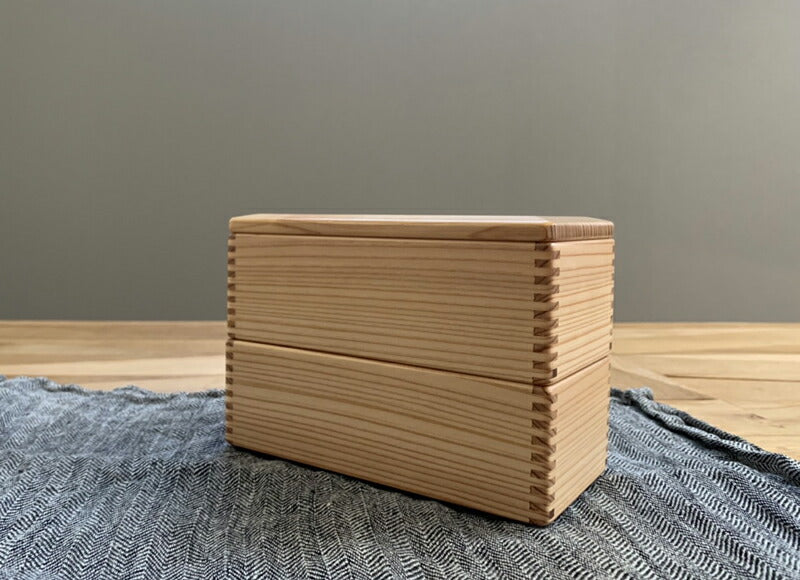 杉の生産量日本一の宮崎県。 温暖で豊かな土壌で育った杉は、油分を多く含み、とても軽くて丈夫です。 そんな杉の木で、現地の職人の手によって丁寧に作られた弁当箱は、 蓋の上部の面取りや、『組み接ぎ』で仕上げられた側面など、 職人の細やかな気遣いを感じられる、本当に美しい逸品です。