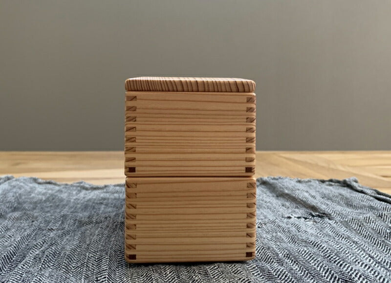 杉の木で、現地の職人の手によって丁寧に作られた弁当箱は、 蓋の上部の面取りや、『組み接ぎ』で仕上げられた側面など、 職人の細やかな気遣いを感じられる、本当に美しい逸品です。