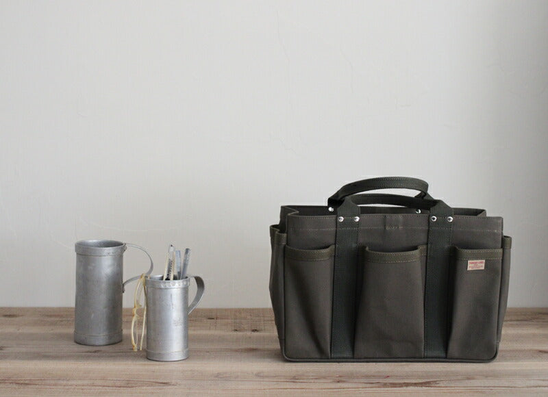 内外に幾つものポケットを備えたタフな“ヘビーキャンバスツールトート“。