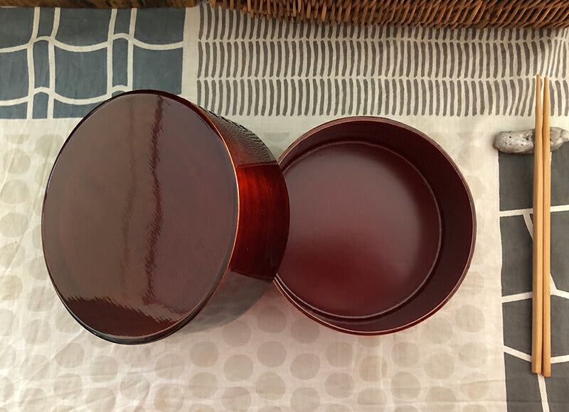 春慶塗とは漆塗りの技法の一種で、素地に膠液を塗り、上に黄または赤の色彩を加え、 さらに透明漆で上塗りして木目の美しさを出す技法。この木目を生かした黄金色の 漆器“春慶塗”は、軽いのでお子様でも簡単に持ち運びができます。 丈夫で長持ちする実用性の高さも特徴の一つです。 運動会や行楽シーズンの弁当箱用などにも最適です。