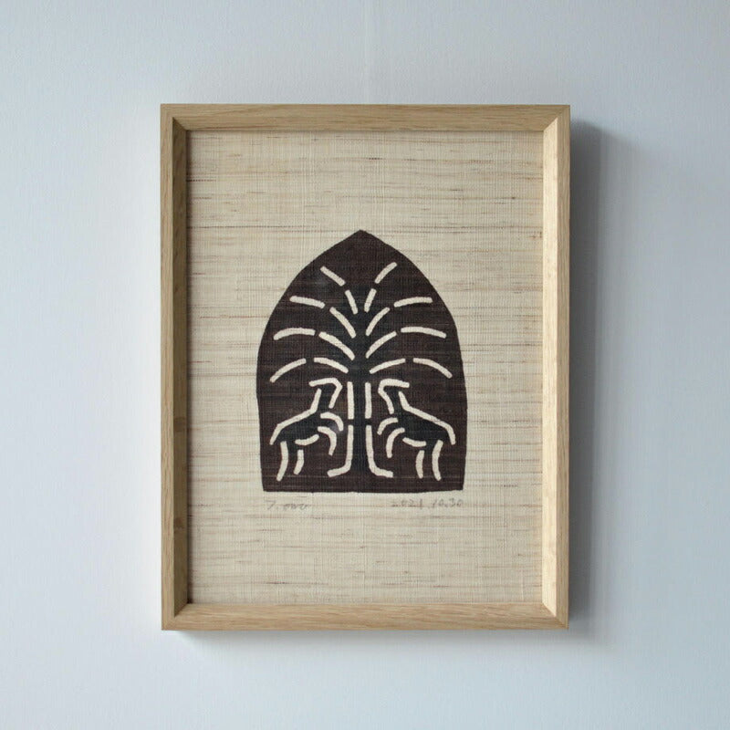 よつめ染布舎 麻布額絵 生命の樹 絵画 版画