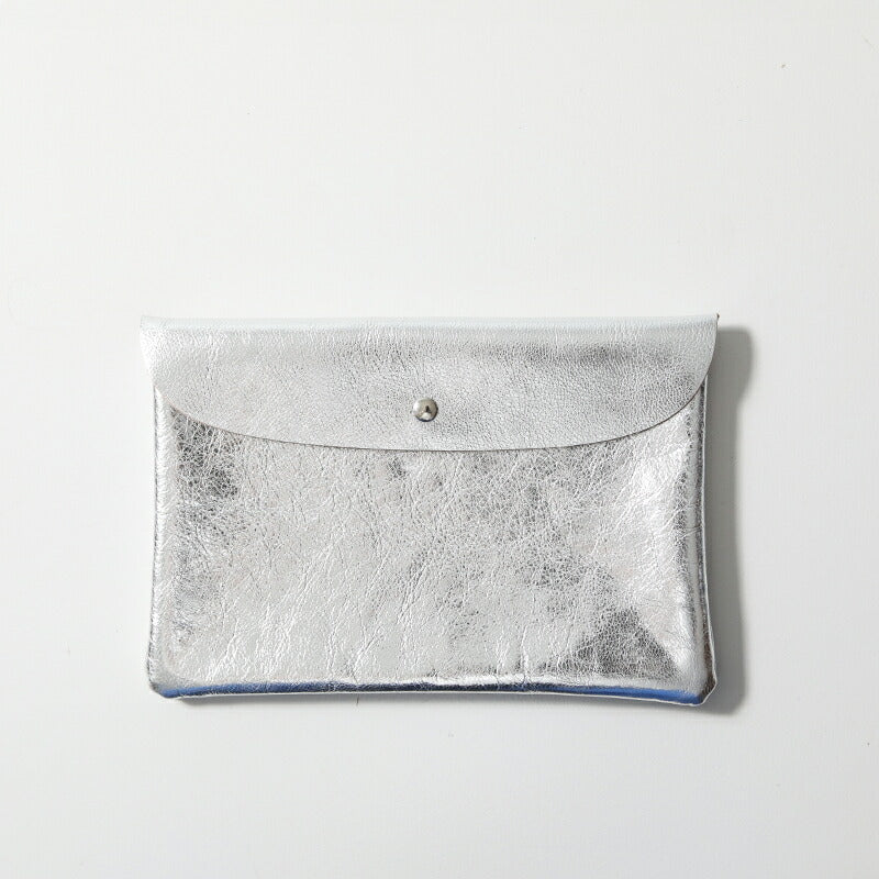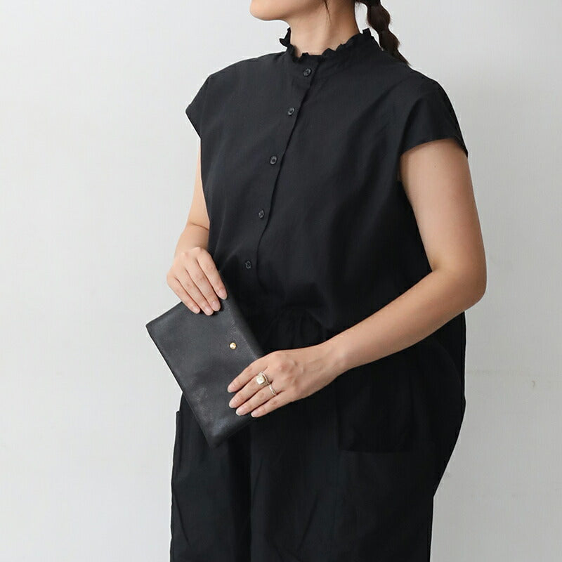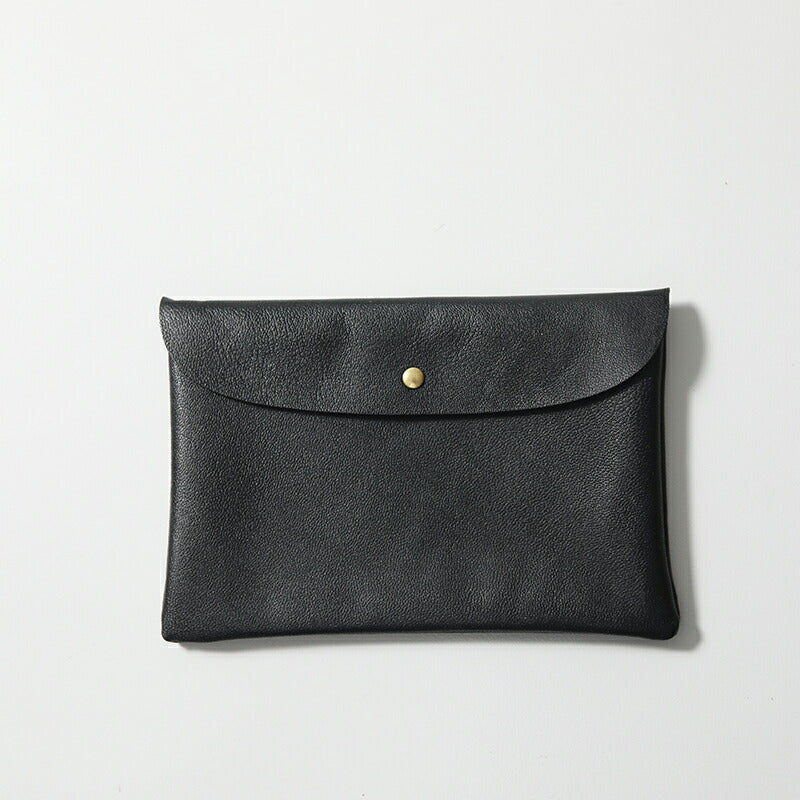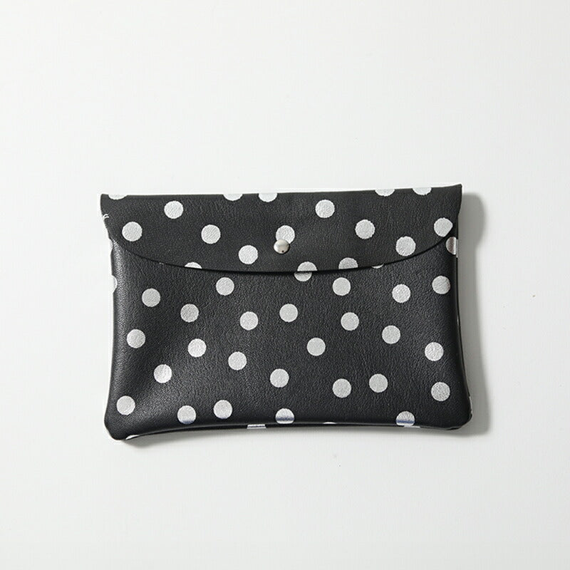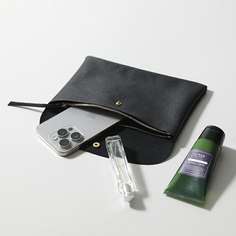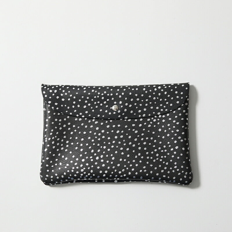 | 上品なツヤ、やわらかく、軽くて丈夫なゴートスキンを使用したポーチ。 フラップはスナップボタン、内側は三つに別れ、中央にはファスナー付きの収納があります。 携帯や小さめのお財布が入るくらいのちょっとしたお出かけに丁度良いサイズ。 とても軽く、やわらかで馴染みのいいゴートスキン。ベーシックなブラック、スタイリングのポイントにもなるシルバーとゴールド、箔プリントのドットシルバー、全5色。 | |