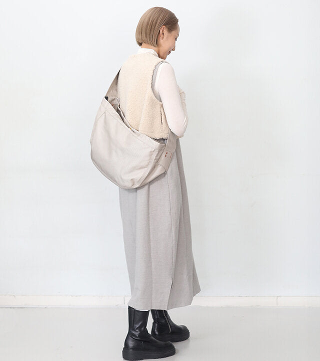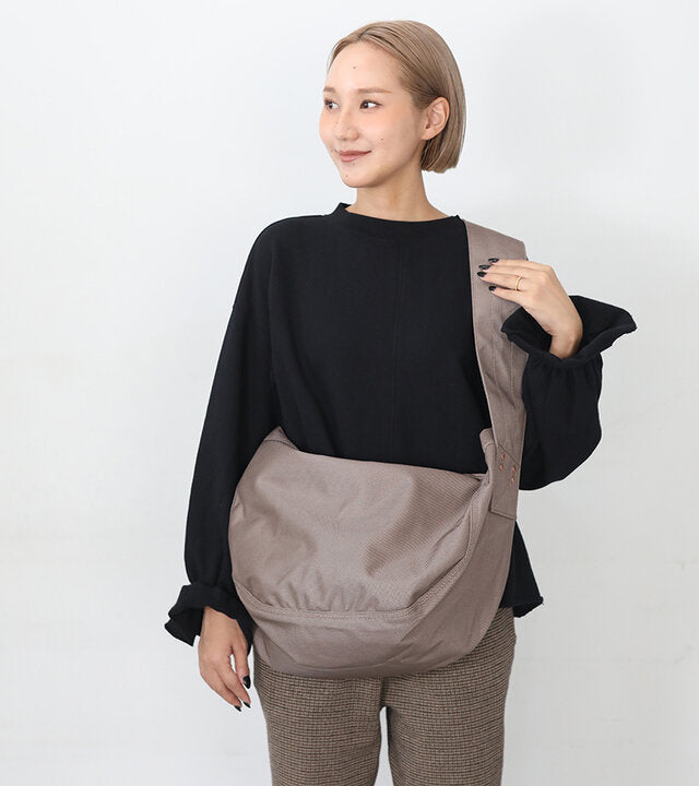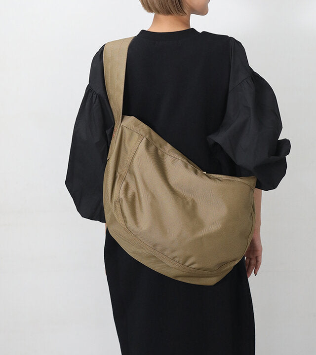 シンプルなデザインとユニセックスで使える素材感で、普段使いから旅行、レジャーまで、幅広いシーンで活躍する万能なショルダーバッグです。