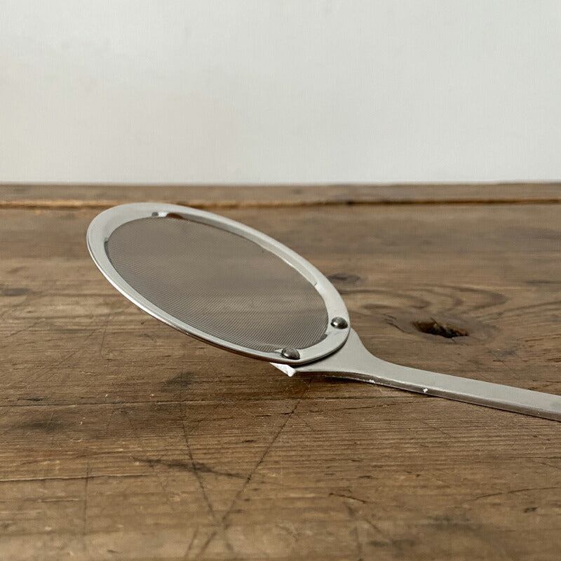 金物や洋食器の生産が盛んな新潟県燕市にある「工房アイザワ」のアク取り。 メッシュが細かく、細かなアクや油分をしっかりと取り除けます。 また、汁はすくわずアクだけを取り出せるよう、持ち手とアミ部の角度が浅く設計されてるのも特徴のひとつ。 卓上で鍋料理をするときにも重宝する小ぶりサイズです。