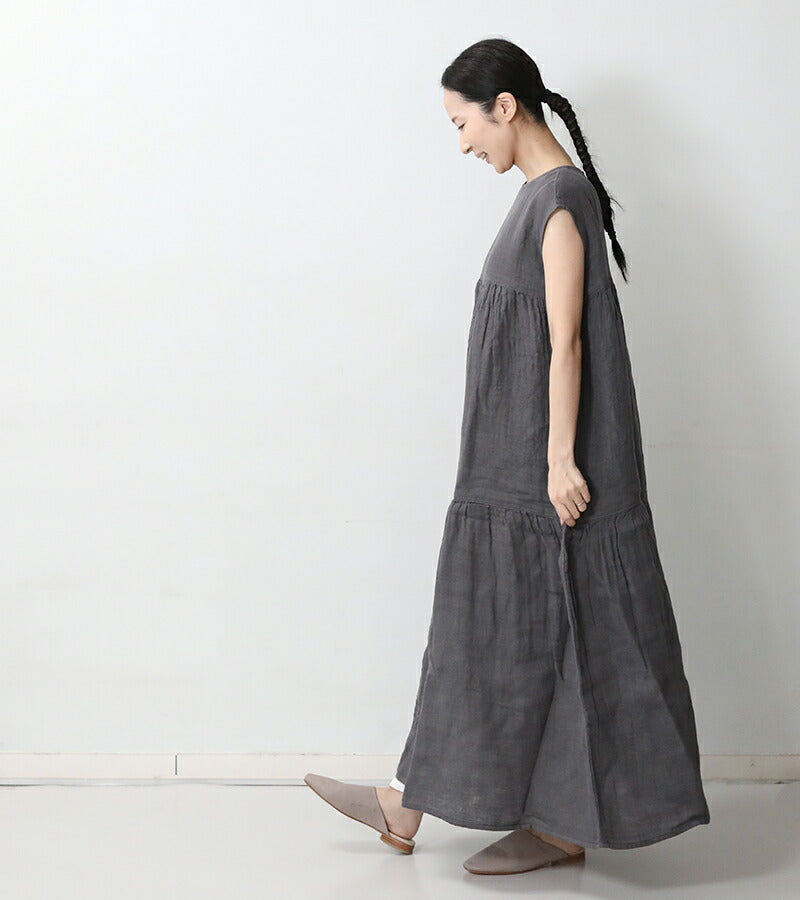 綿100%の蚊帳生地をつかったロング丈ワンピース。