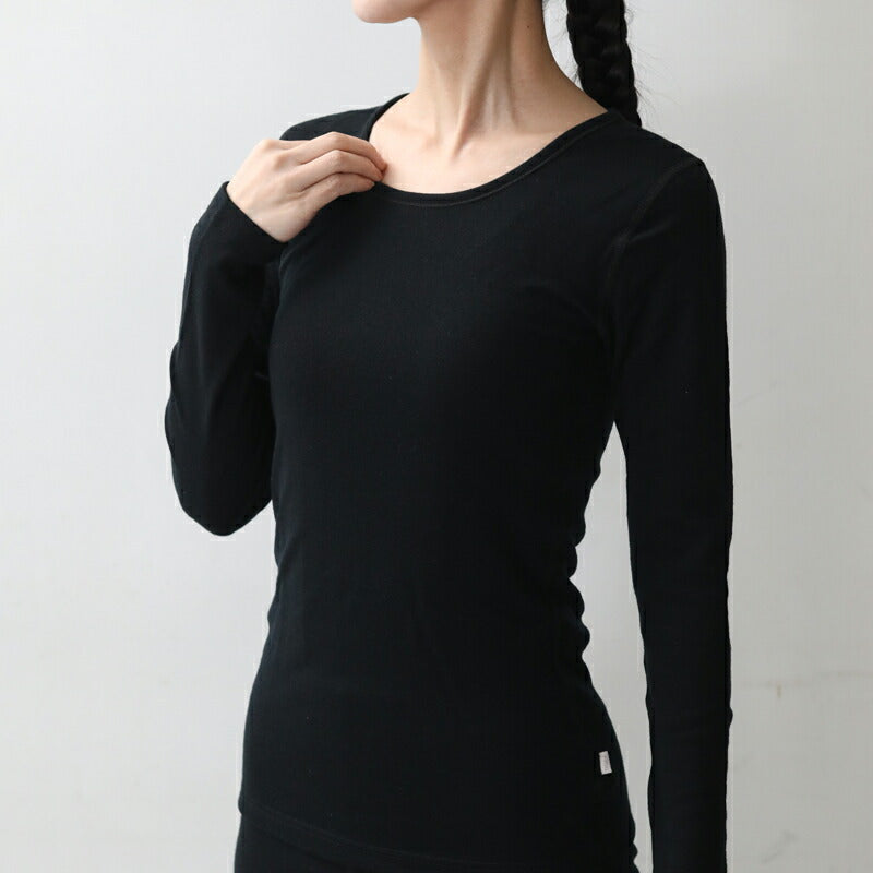 メリノウール100%の MARIE(マリー)の長袖アンダーシャツ。さらりとした肌触りで体に程よくフィットします。