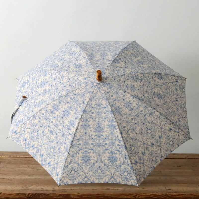 SUR MER 晴雨兼用 長傘 ダマスク柄プリント ブルー