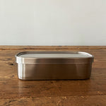 | 金物や洋食器の生産が盛んな新潟県燕市にある「工房アイザワ」の角長ランチボックス1段。ステンレス製のランチボックスは色移りやにおい移りが少なく、長く清潔にお使いいただけます。 シリコン製のパッキン付きで汁漏れが気になる煮物類を入れるときも安心。バッグの中で横倒しになりにくい細長の形状もポイントです。 | |