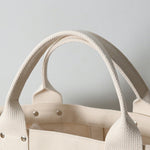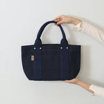 | 純綿100%で厚くて丈夫。岡山県で織られている6号帆布を東京の鞄職人がしっかりと縫い上げた、とてもシンプルなトートバッグのSサイズです。 口元を留める「挟みナスカン」や補強の為の「ネジ鋲」など細かなパーツにもこだわって作りました。 |